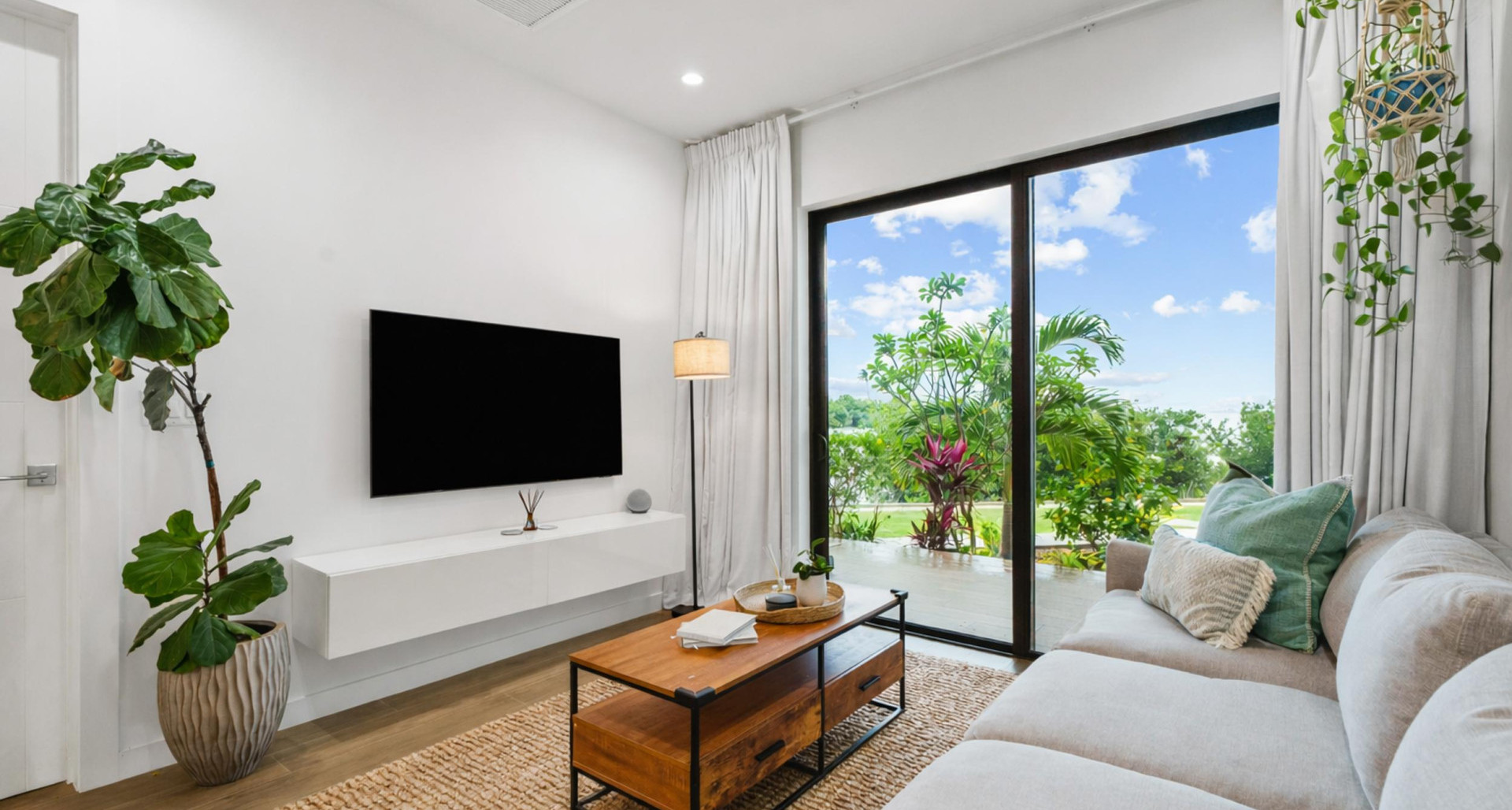 Beyond the front door, residents have access to waterfront amenities, including a pool overlooking the North Sound and beautifully maintained gardens. The location provides quick access to supermarkets, gyms, schools, and the airport.