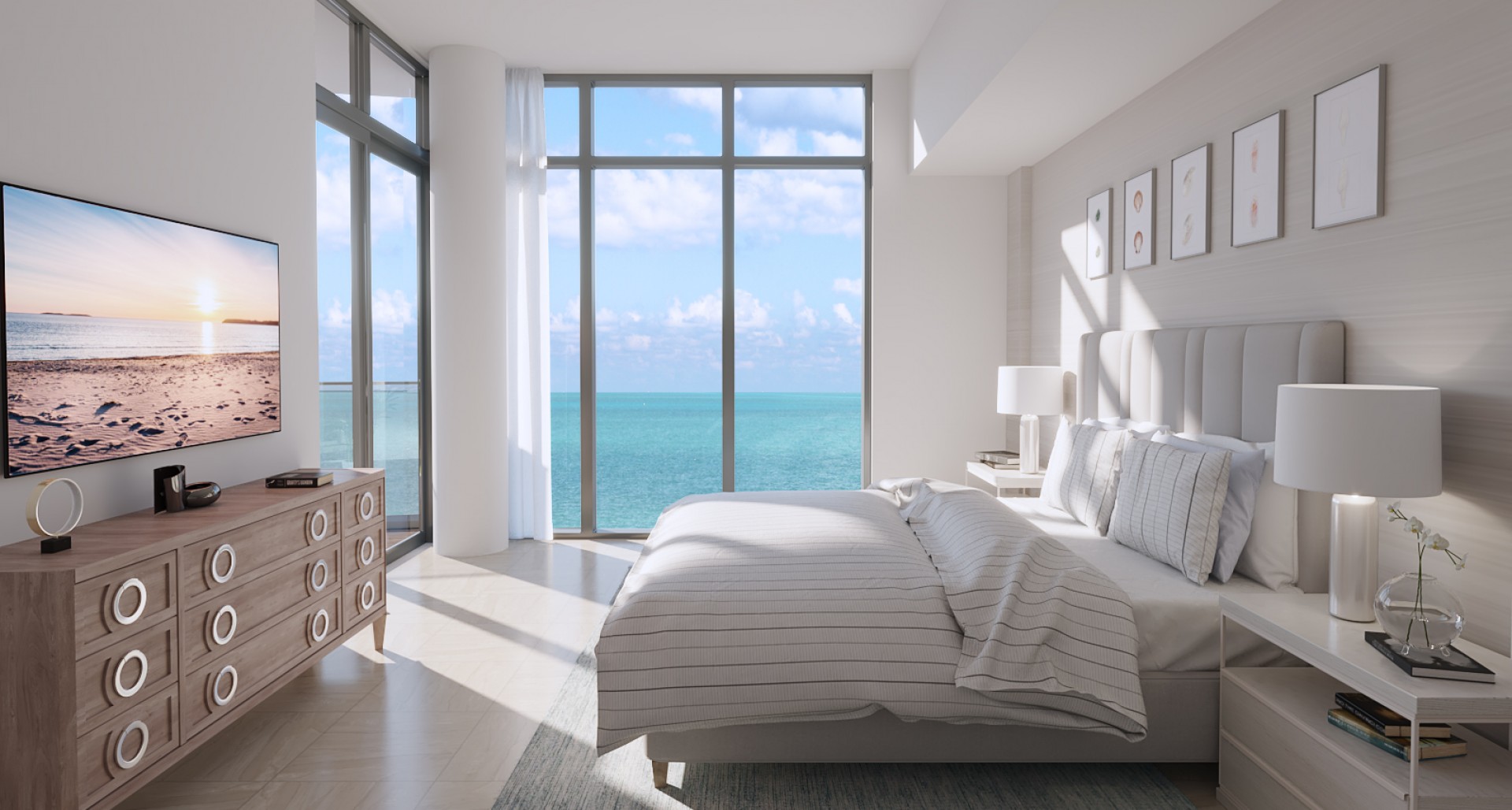 Each residence has been carefully planned for relaxed, contemporary coastal living. Spacious three-bedroom, three-and-a-half-bath layouts feature open-concept living areas, 10-foot ceilings, floor-to-ceiling glass, gourmet kitchens with wet bars, home offices, laundry rooms and two generous terraces, all accessed directly by private elevator. Owners and guests enjoy a 90-foot beachfront waterfall-edge pool and spa, expansive sun deck and private sandy beach, boutique-hotel style reception, oceanfront lounge and games room, fitness centre, beachfront BBQ areas, lush tropical landscaping, day-room facilities for late departures and secure covered parking.